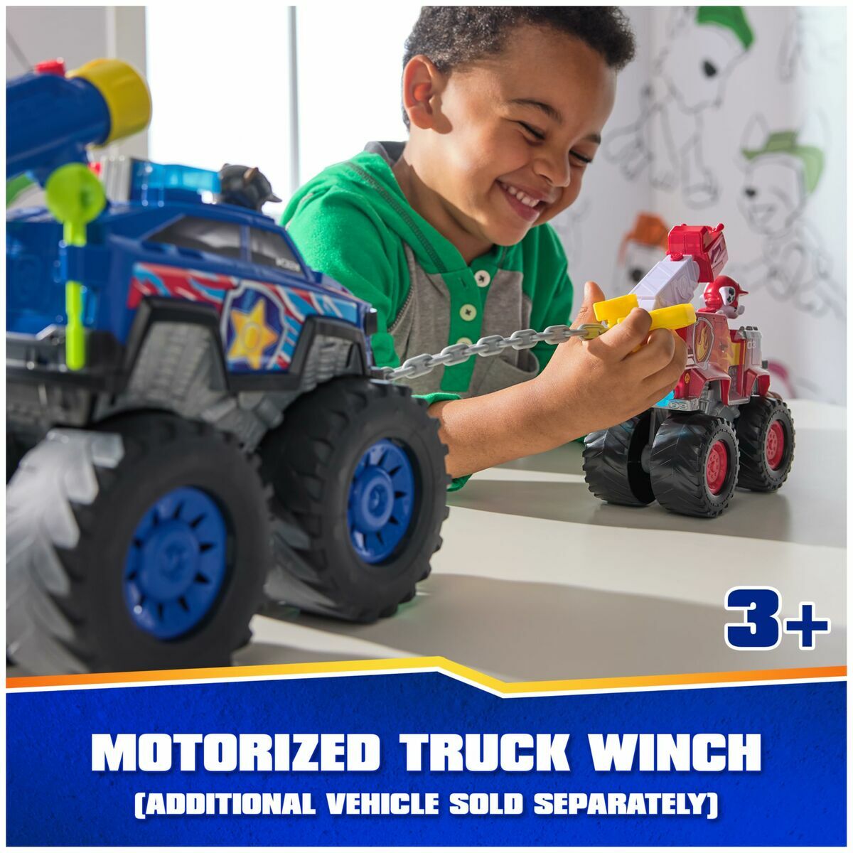 Embárcate en arriesgadas misiones de rescate junto a Chase, en su vehículo PAW Patrol: Rescue Wheels Power Haulin’ Rescue Cruiser. Este dinámico camión de juguete cuenta con ruedas de gran tamaño, luces cautivadoras y sonidos sacados directamente de la serie. El vehículo de Chase está equipado con un gancho motorizado retráctil con una garra funcional para disfrutar de un juego emocionante. Este camión de policía presenta un diseño fiel a la serie de PAW Patrol. Coloca tu figura de Chase en el asiento del conductor, carga el lanzador de proyectiles con uno de los dos proyectiles y pulsa el botón para pasar a la acción y divertirte con toda la acción. Cuando tus amigos estén en un aprieto, extiende manualmente el gancho, engancha la garra y activa el gancho motorizado para realizar emocionantes rescates acompañados de luces y sonidos llamativos. Los juguetes de PAW Patrol para niños y niñas serán formidables regalos para los fans de la serie, y ayudarán a fomentar la imaginación al jugar y a desarrollar la motricidad fina. Vive una y otra vez los momentos favoritos de las temporadas de PAW Patrol, como los poderes de los Mighty Pups u otras escenas de las películas, o crea tus propias aventuras con cada uno de los cachorros y sus respectivos coches de juguete (se venden por separado). Añade más emoción si cabe con el equipo Rescue Wheels al completo, que incluye vehículos, figuras de acción y la novedosa torre a modo de cuartel general de PAW Patrol, y disfruta de horas y horas de turboaventuras inspiradas en la serie.