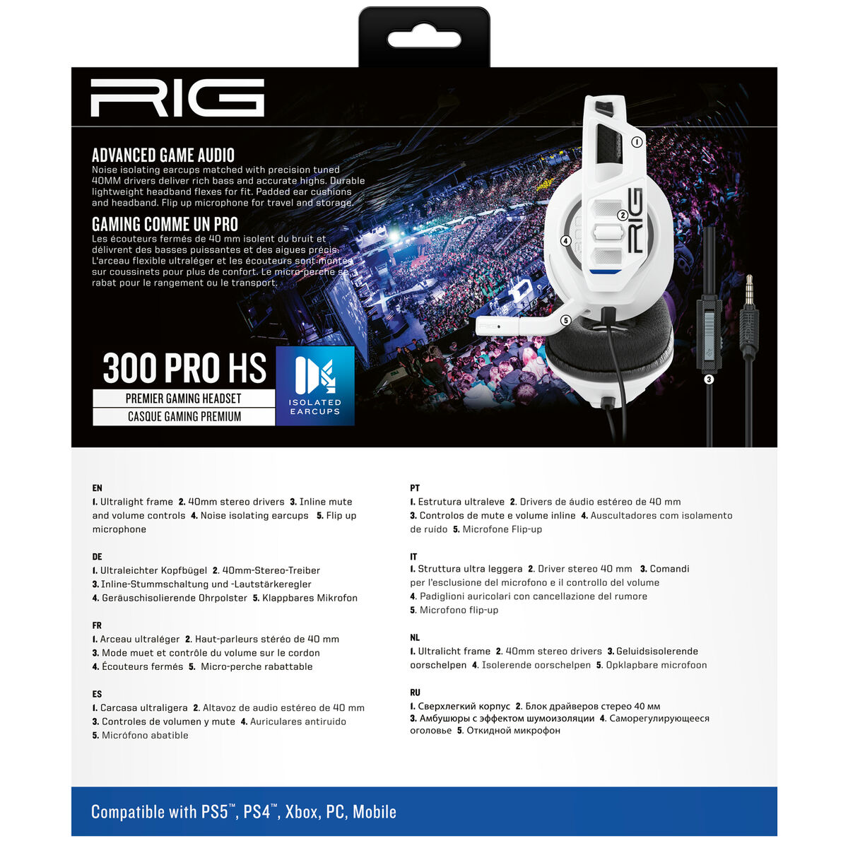 NACON RIG 300 PRO HS. Tipo de producto: Auriculares. Tecnología de conectividad: Alámbrico. Uso recomendado: Juego. Frecuencia de auricular: 20 – 20000 Hz. Longitud de cable: 1,2 m. Peso: 233 g. Color del producto: Blanco