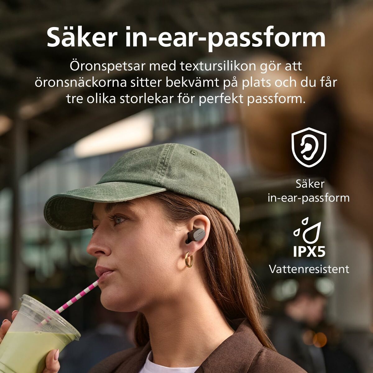 Philips 5000 series TAT5000BK/00. Tipo de producto: Auriculares. Tecnología de conectividad: Inalámbrico, Bluetooth. Frecuencia de auricular: 20 – 20000 Hz. Alcance inalámbrico: 10 m. Peso: 46 g. Color del producto: Negro