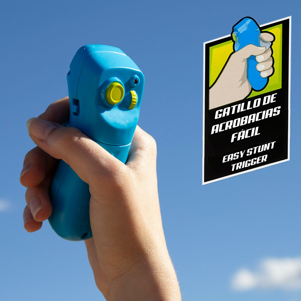 • 3 técnicas de vuelo: domina increíbles movimientos como el tornado acrobático, giros de vértigo y bucles simples y dobles y ¡vive una experiencia aérea única! (el mando funciona con 2 pilas AAA (n/incl.) y el avión funciona con batería recargable (cable USB incluido)