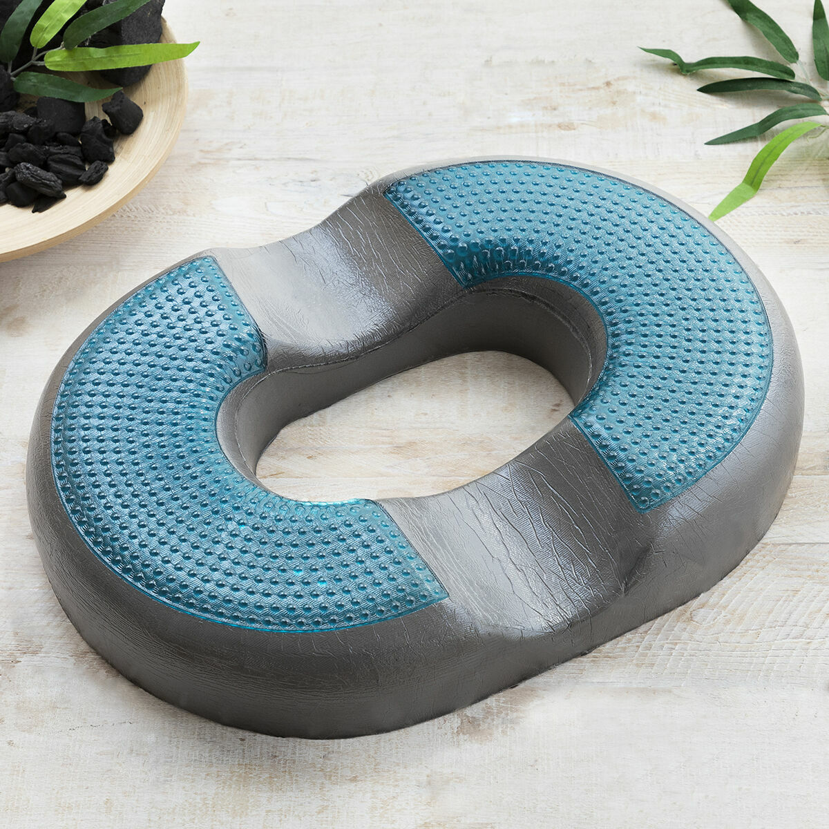 Su gel refrigerante y su diseño adaptado a la zona del coxis ayudan a aliviar dolores y molestias. La espuma del interior es de alta densidad y está impregnada con carbón de bambú que neutraliza los olores. Dispone de funda extraíble y lavable en lavadora para facilitar la higiene y su limpieza. Además, su asa de transporte permite llevarlo cómodamente a cualquier parte.