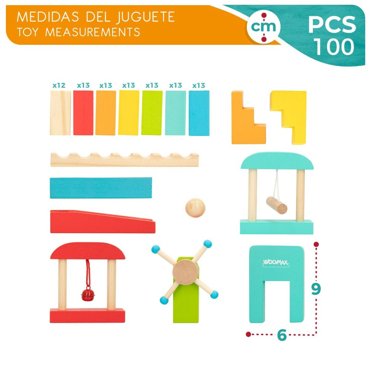 - Incluye: 100 piezas de madera con bordes redondeados, textura suave, diseñado en colores llamativos, las piezas tienen el tamaño adecuado para las manitas de los peques