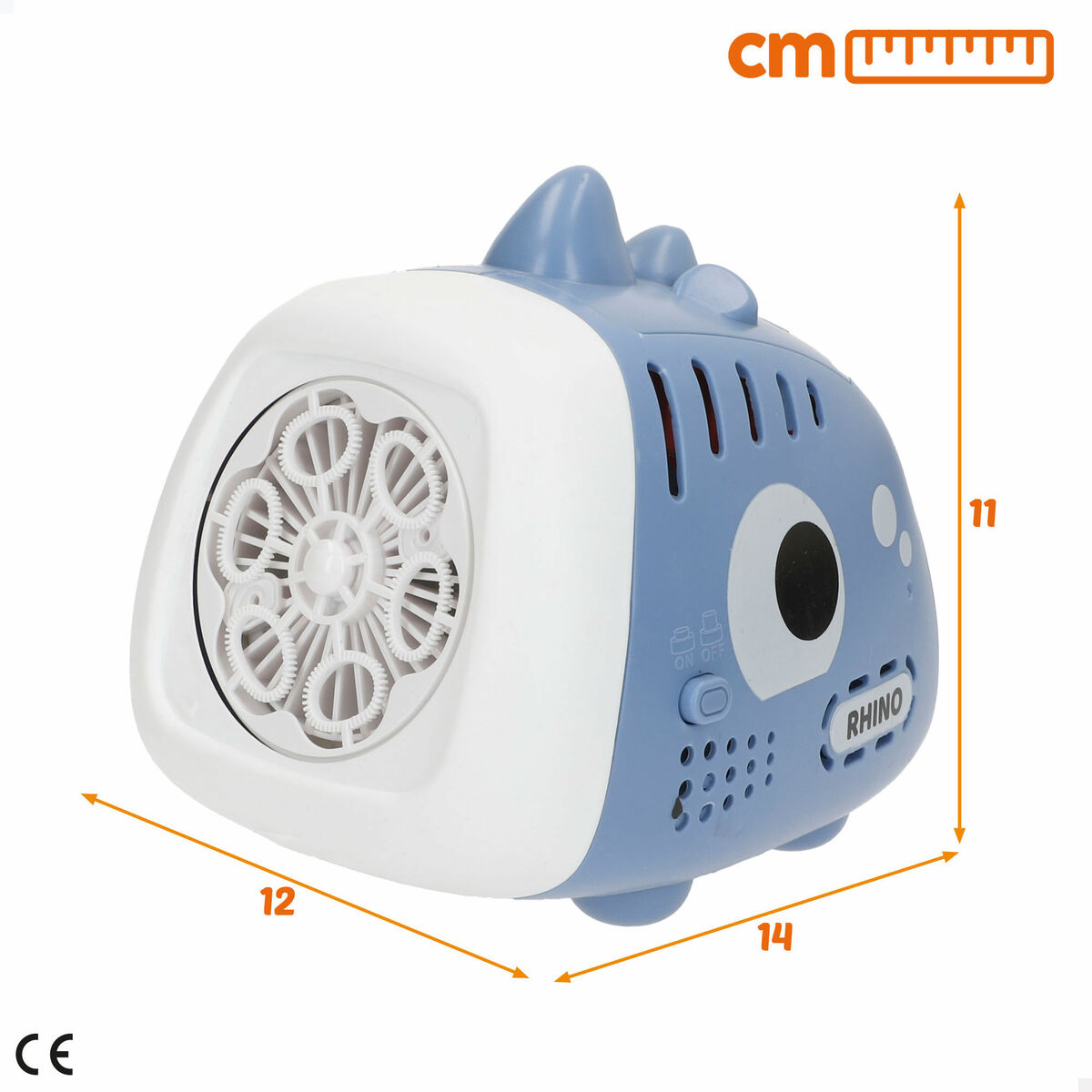 Esta divertida máquina de burbujas con forma de rinoceronte convierte cualquier momento en único. Solo tienes que añadir el líquido incluido en el depósito, encenderla y ver cómo lanza decenas de burbujas en pocos segundos. Funciona con 4 pilas AA (no incluidas), es fácil de usar y tiene un diseño robusto pensado para los más pequeños. Ideal para jugar en el jardín, la terraza o en cualquier lugar.