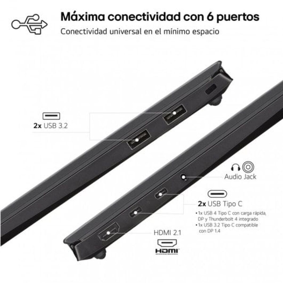 El LG 14Z90S-G.AD78B es un laptop de última generación diseñado para usuarios que demandan rendimiento avanzado y portabilidad sin compromisos. Incorpora un procesador Intel Core Ultra 7-155H, que garantiza ejecución fluida tanto en tareas de productividad como en aplicaciones profesionales, respaldado por una generosa memoria RAM de 32 GB, permitiendo la edición multimedia, multitarea intensiva y gestión de grandes volúmenes de datos con gran eficiencia. Su almacenamiento SSD de 1 TB proporciona amplitud y velocidad para almacenar documentos, proyectos y archivos de gran tamaño, acelerando los tiempos de carga y transferencia. La pantalla de 14 pulgadas con relación de aspecto 16:10 ofrece un espacio visual optimizado para trabajo y entretenimiento, mostrando imágenes nítidas y colores fieles, ideal para quienes priorizan calidad y confort visual en jornadas prolongadas. El equipo dispone de un teclado QWERTY en español con teclas numéricas integradas, facilitando el trabajo en hojas de cálculo y elaboración de informes, junto a un touchpad preciso para navegación ágil. Construido en color negro de líneas elegantes, incluye cámara frontal para videoconferencias de alta calidad y puerto HDMI para conexiones multimedia o presentaciones en pantalla externa. La integración de Windows 11 asegura una experiencia intuitiva y moderna, aprovechando las funciones y la seguridad del sistema operativo más reciente. Este modelo reúne tecnología puntera, versatilidad y ligereza, consolidándose como una solución eficaz para profesionales, estudiantes y usuarios exigentes que requieren movilidad y capacidad de respuesta en su dispositivo portátil.