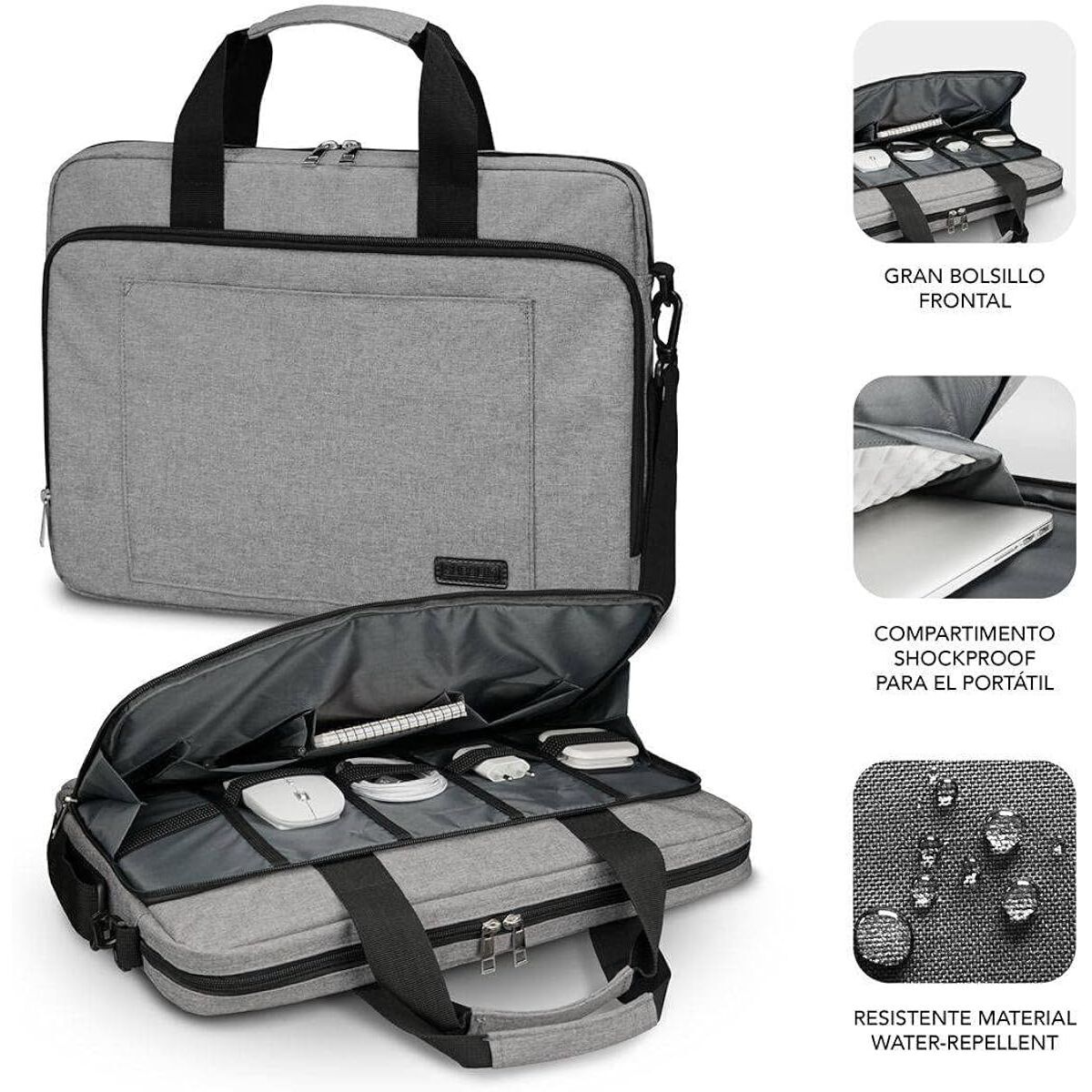 El maletín para portátil SUBLB4APLB01 de la marca Subblim es una solución práctica y funcional diseñada para proteger y transportar dispositivos de hasta 14 pulgadas con total seguridad. Fabricado en poliéster gris, un material reconocido por su resistencia al desgaste y facilidad de limpieza, este maletín combina durabilidad y un diseño sobrio que se adapta tanto a entornos profesionales como académicos. Su estructura cuenta con compartimentos bien organizados para organizar un portátil junto con documentos y accesorios esenciales, facilitando la movilidad y el orden en el día a día. Además, su ligereza y tamaño compacto hacen que sea cómodo para transportar, ya sea en mano o mediante su asa reforzada. Ideal para usuarios que necesitan un maletín para portátil resistente, práctico y discreto, este modelo satisface las necesidades básicas de protección y transporte sin renunciar a la estética. El maletín SUBLB4APLB01 representa una opción equilibrada dentro del segmento de accesorios para portátiles de tamaño medio.