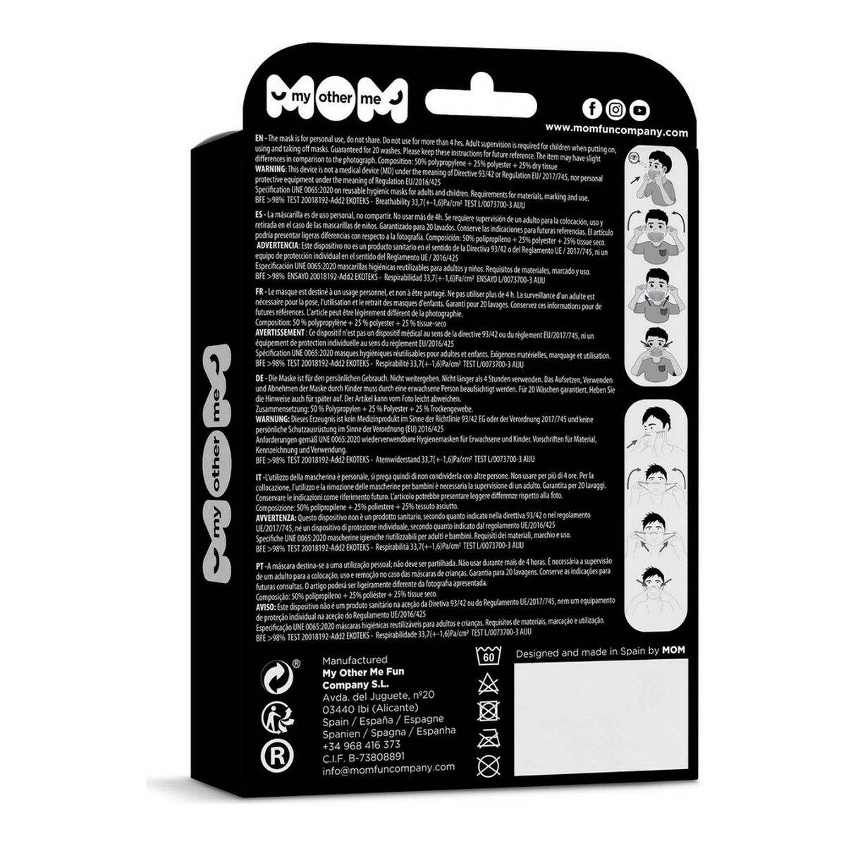 • Las medidas de las mascarillas así como de los elásticos son homologadas. Se trata de medidas estándar por lo que se recomienda ajustar los elásticos para una mayor adaptabilidad y eficacia.
