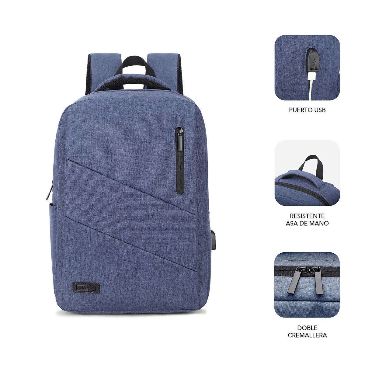 La mochila para portátil Subblim SUB-BP-2BL2001 está diseñada para quienes buscan funcionalidad y protección en el día a día, combinando estilo moderno y atendiendo a las necesidades de movilidad. Fabricada en poliéster resistente al agua, esta mochila protege eficazmente tu portátil y el resto de dispositivos ante salpicaduras y lluvias ligeras, lo que la hace adecuada tanto para entornos urbanos como para desplazamientos. Dispone de un compartimento principal acolchado compatible con portátiles de hasta 15,6″, garantizando seguridad y fijación óptima durante el transporte, así como bolsillos adicionales para accesorios y documentos, facilitando la organización y el acceso rápido a objetos personales. El puerto USB integrado permite cargar fácilmente dispositivos móviles, como smartphones o tablets, conectando una batería externa (no incluida), lo que resulta especialmente útil en viajes y trayectos largos. Sus correas de hombro ergonómicas y acolchadas distribuyen el peso de forma uniforme y contribuyen a la comodidad durante su uso prolongado, mientras que el asa de mano reforzada amplía las opciones de transporte. El acabado en color azul aporta un toque elegante y profesional, adecuado tanto para el trabajo como para el ámbito académico. La Subblim SUB-BP-2BL2001 une practicidad y protección en un diseño robusto, siendo una opción fiable para quienes priorizan la seguridad y la comodidad en sus desplazamientos tecnológicos.