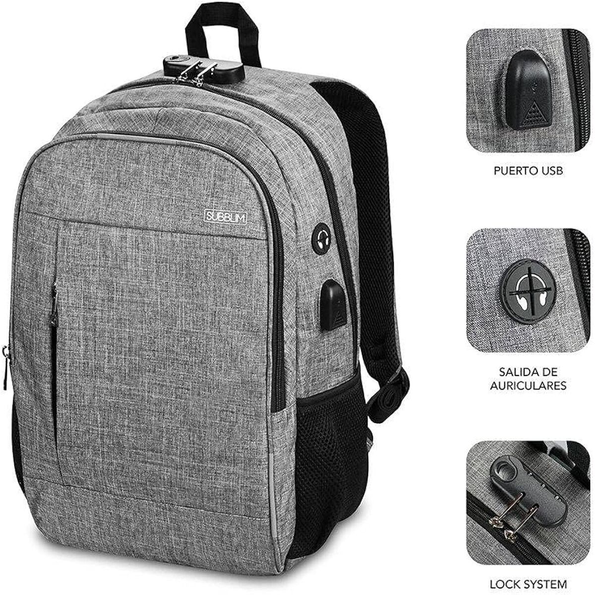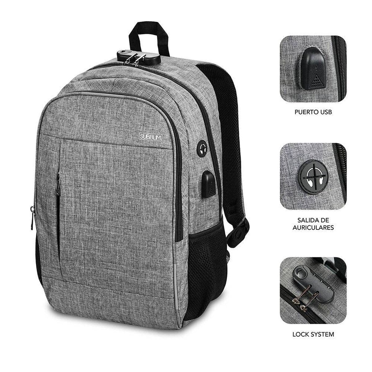 Mochila para Portátil y Tablet con Salida USB Subblim SUB-BP-1UL0001 Gris