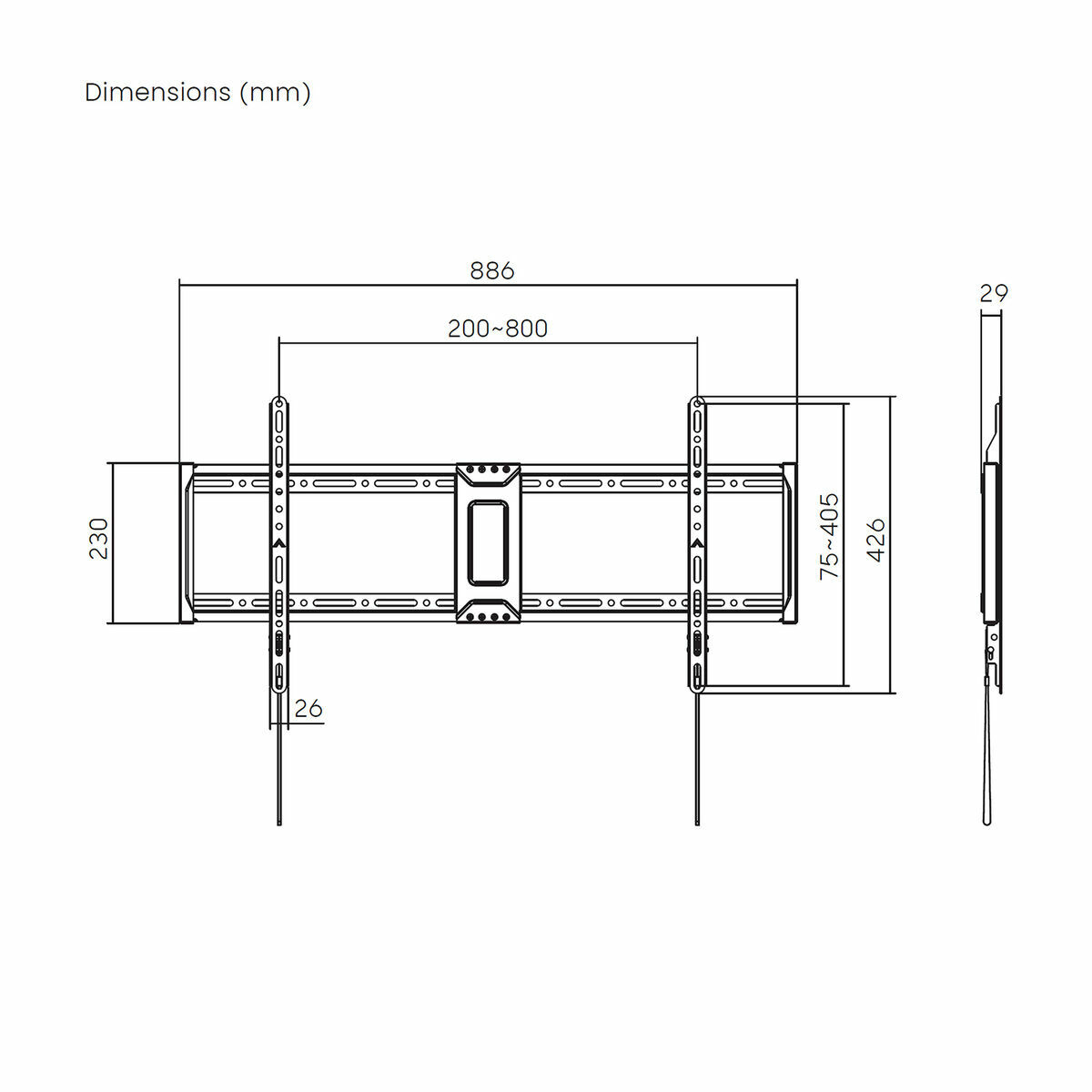 - VESA 800 x 400 mm