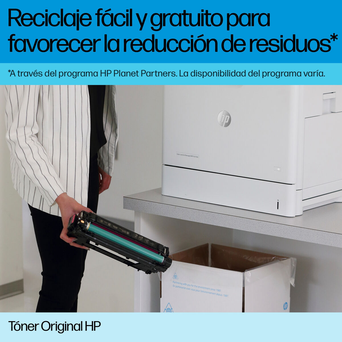 - Contenidos de caja: Cartucho de tóner; Guía de reciclaje