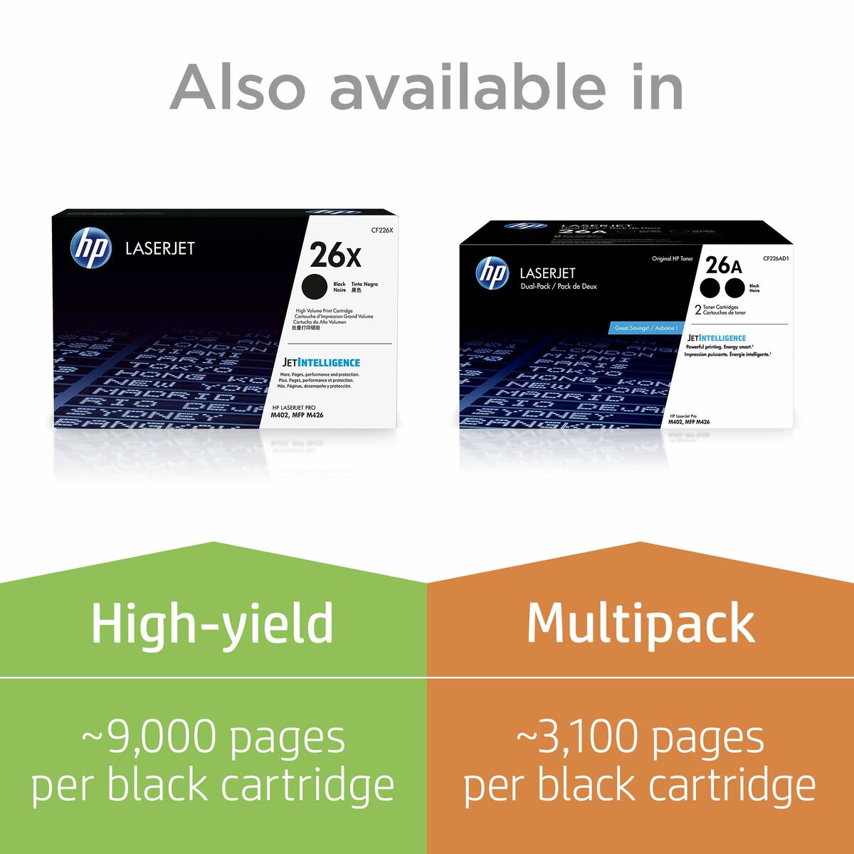 - Compatibilidad: Los cartuchos de Tóner HP 26 funcionan con: HP LaserJet Pro M402, M426